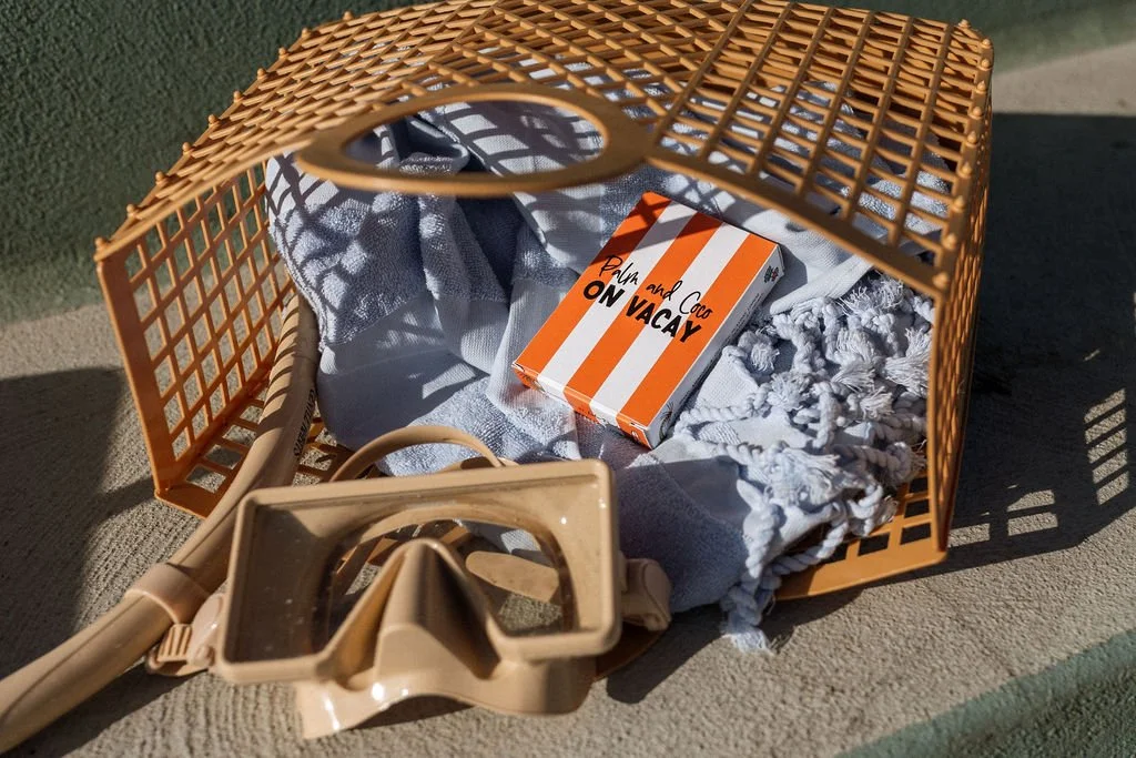 Palm & Coco on Vacay kids playing cards are a cool & colourful, nostalgic deck of 56 kids playing cards (28 unique pairs) featuring heartfelt hand-drawn illustrations by Lulu Pawlik, of Palm (the playful palm tree) and Coco (the carefree coconut), on their favourite holiday adventures!